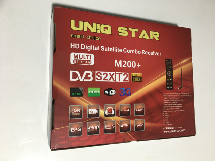 گیرنده فول امکانات ده بیت H265 دوکاره کمبو یونیک استار مدل M200 دارای گیرنده دیجیتال و آنتن 10BIT