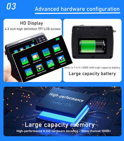 این دستگاه از H.265 پشتیبانی میکند. این یعنی میتوانید فرکانسهای ۴K یا شبکههایی که با سیستم جدید پخش میشوند (مثل برخی شبکههای صداوسیما روی بدر) را مستقیماً روی مانیتور فایندر مشاهده کنید و از بابت تصویر خیالتان راحت باشد.